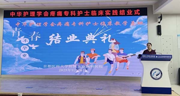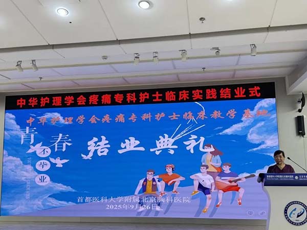 金秋九月,丹桂飘香。首都医科大学附属北京胸科医院首届中华护理学会疼痛专科护士毕业典礼于9月26日举行。来自全国不同省市的4名学员顺利通过理论考核、操作考核及个案答辩,圆满完成了为期4周的临床实践学习,顺利结业。北京胸科医院感染科副护士长朱云莲主持结业典礼。