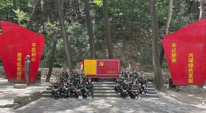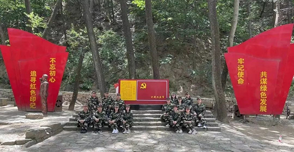 这里是八路军在平北最先站稳脚跟的地方,是平北抗日根据地的摇篮。原行政一、二、三党支部的党员同志们在这里换上了作训服,集合整队,举行授旗仪式。讲解员向党员同志们介绍了大庄科地区的党组织发展史和革命先烈们艰苦卓绝的斗争史。1938 年平北地区第一个农村党支部就在这里诞生,党员同志们站在这片红色的土地上,沉浸式感受着先辈们的革命力量,这种力量鼓舞着、激励着我们永远跟党走,为早日实现中华民族伟大的复兴梦而努力奋斗。