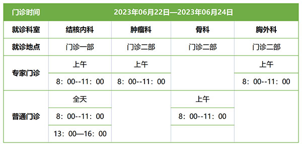 4. 门诊特殊病:2023年06月22日~2023年06月24日在门诊一部2号窗口办理;