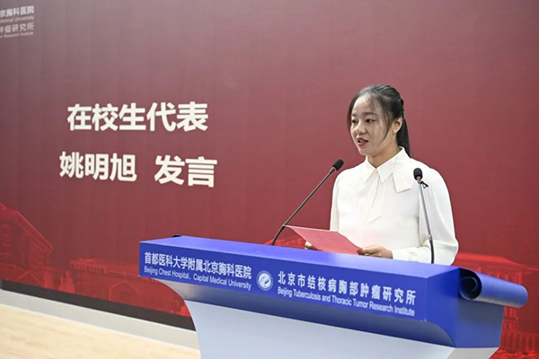 2024级新生代表董耀发言时表达了对医学的热爱与胸科精神的崇敬,并希望新同学们在胸科医院这个广阔的平台上追逐梦想、书写人生重要章节。2022级在校生代表姚明旭对老师们的深情教诲表达了感恩,鼓励新生勇敢面对未来挑战,突破自我,在研究生生活中不断成长。