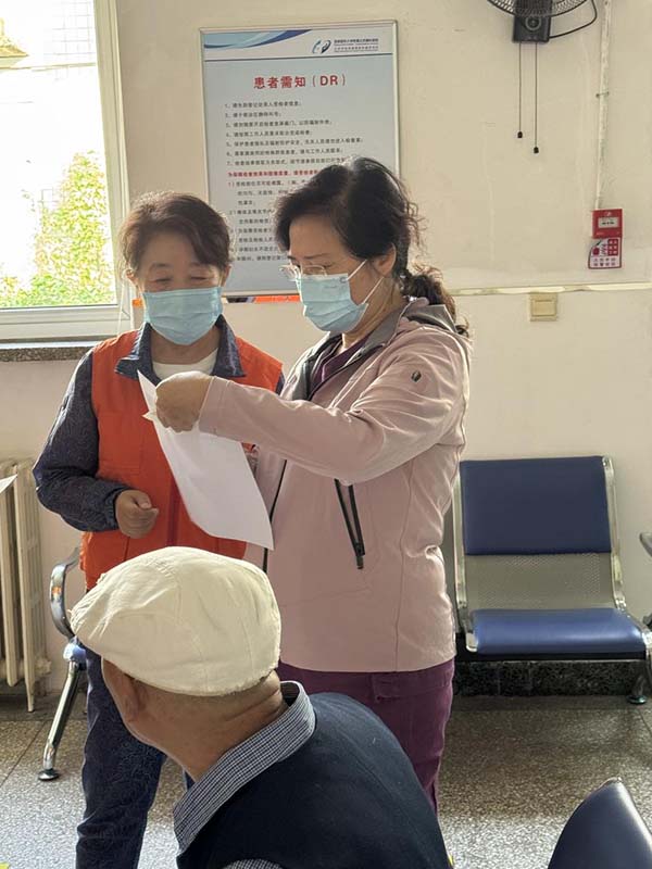 本次体检工作得到志愿者们的大力支持。志愿者们对高龄、行动不便的老同志进行帮扶或全程陪检,悉心搀扶老人上下检查床,引导、提醒、帮助老同志进行各个项目的检查,对B超、CT等项目安排专人协助做好体检工作。老党员先锋队志愿者认真负责、服务热情,南丁格尔志愿服务队员的加入为安全工作保驾护航,团委和教育处的年轻志愿者彰显青春的朝气。