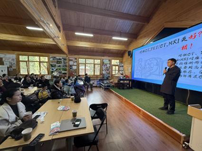 随后,在天坛公园宣教中心以“科普沙龙”的形式展开深入的互动交流。北京胸科医院外二党支部博士白哲昕带来了他原创的科普漫画“小白图说”,通过生动的漫画形式,详细讲解了肺结节的相关知识,使小朋友们也能轻松理解肺结节的概念及其早期发现的方法,有效消除了大众对肺结节的恐惧心理。北京胸科医院医政二党支部营养科医师李卓分享了如何通过科学合理的膳食来提升自身免疫力,预防呼吸道疾病的发生。北京胸科医院营养科还精心准备了自制的秋梨膏饮品,恰逢季节交替、气候干燥之时,一杯热气腾腾的秋梨膏饮,瞬间让喉咙感受到清爽与舒适。北京妇产医院医工采购营养联合党支部工程师刘铭洋为大家详细讲解了家用血压计的正确使用方法、日常保养及定期检测的重要性,并为大家现场进行血压检测。罗竹茜同志则为大家展示了天坛公园在科普宣教方面所运用的数字化手段,生动呈现了二十四节气下天坛皇穹宇科学建筑的特点,将传统文化、自然之美与古建筑之美完美融合,令人陶醉其中,深感震撼。最后,宣教中心播放了生态观鸟宣传片《天坛黑头鳾》,记录了公园内各种野生鸟类的生存状态,宣传片以“天坛黑头鳾”的恋爱、产子、育雏各个阶段的家庭生活为主题,呼吁社会各界共同保护我们宝贵的绿色生态环境。