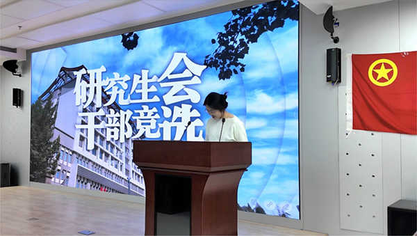 随后,纪婷婷为第十二届研究生会优秀干部颁发纪念品并寄语拟竞选的新同学。她充分肯定了第十二届研究生会在日常事务与活动组织中的辛勤付出与工作成效,并对即将产生的新一届成员提出殷切期望,鼓励大家在既有成绩基础上继续稳步推进各项学生工作。