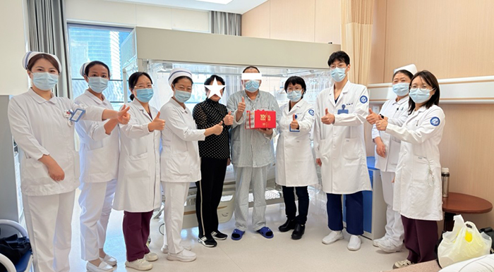 TIL细胞治疗对开展医院的整体要求很高,需要多学科多科室密切配合。在张同梅的指导和协调下,相关医疗、护理团队高度重视,全流程密切合作。胸外科副主任医师杨威进行了患者锁骨上淋巴结完整切除用于TIL分离及扩增,护士长冯月亮、Key-sub和主治医师齐菲提前对患者病房的隔离与消毒工作进行了详细安排,副主任医师高远、主管护士杨桐等医护人员密切配合,最终顺利完成了细胞输注治疗和安全监控。