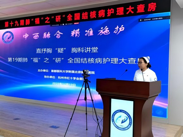 为进一步推动结核病护理专业发展,深化中西医融合护理实践,首都医科大学附属北京胸科医院于2025年12月19日举办第十九期肺“福”之“研”—全国结核病护理大查房活动。本次查房病例由北京胸科医院和杭州市红十字会医院提供。活动由北京胸科医院护理部主任王秀军主持。