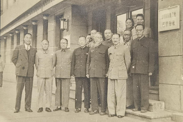 第一排左起:石华玉、邹邦柱、朱尔梅、范秉哲、吴绍青(主任委员)、何穆(副主任委员)