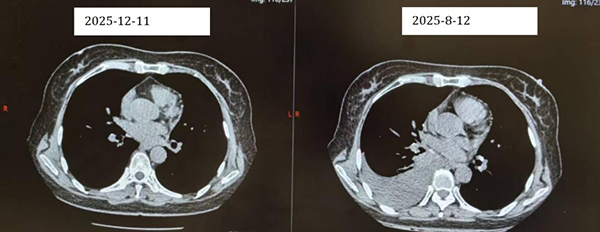 针对祝女士的复杂病情,专家团队制定了精准的联合治疗方案:第三代EGFR靶向药物联合MET抑制剂。同时,对于治疗过程中出现的胸腔积液等并发症,团队积极进行对症支持治疗,减轻他的痛苦,提高生活质量。