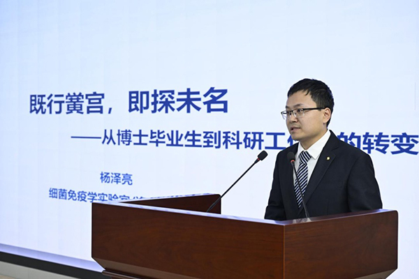 随后,肿瘤中心主任、院长助理林根分享了临床研究体系建设、资源整合、对外合作等方面的创新举措与成效;细菌免疫学实验室杨泽亮结合自身成长经历,从博士毕业生转变为科研工作者的视角,分享了在医院科研平台支持下的成长感悟与工作体会,展现了青年科研工作者的活力与担当。
