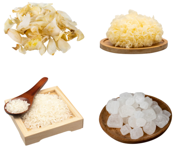 【材料】百合20克、银耳10克、大米50克、冰糖适量(根据口味添加,不宜过多)