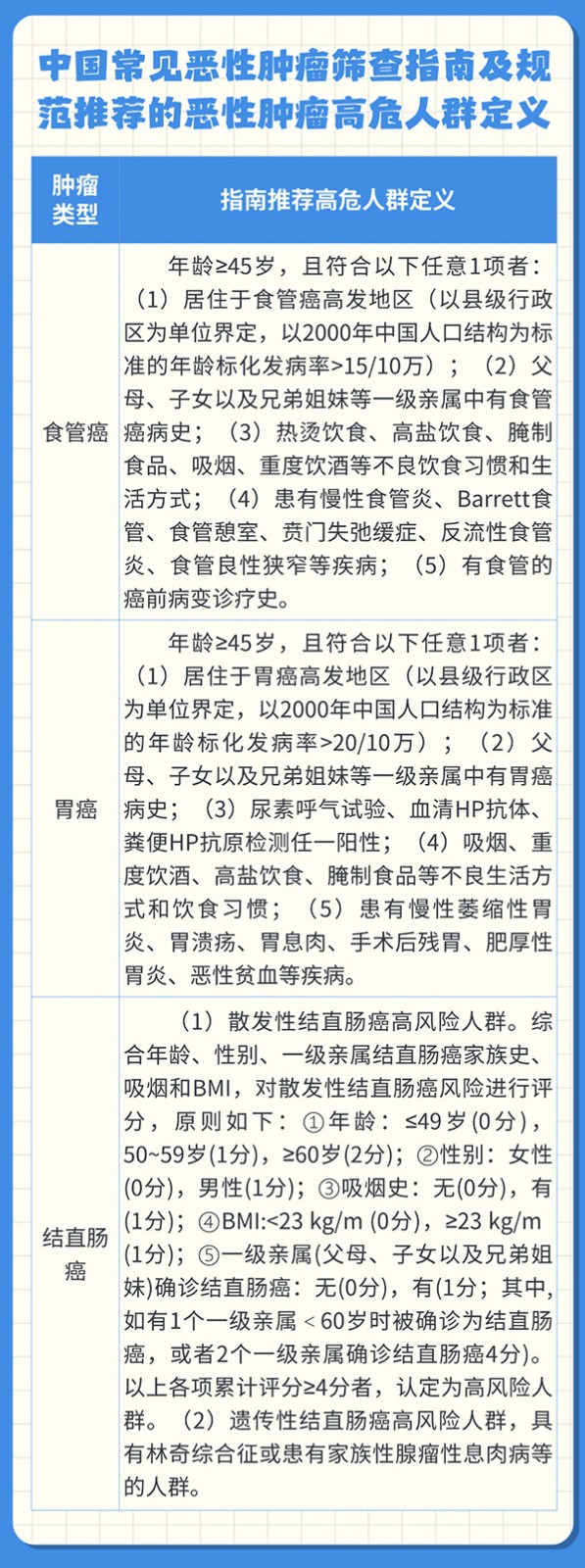 消化道癌高危人群主要包括以下几类,这类人群需重点关注、定期筛查: