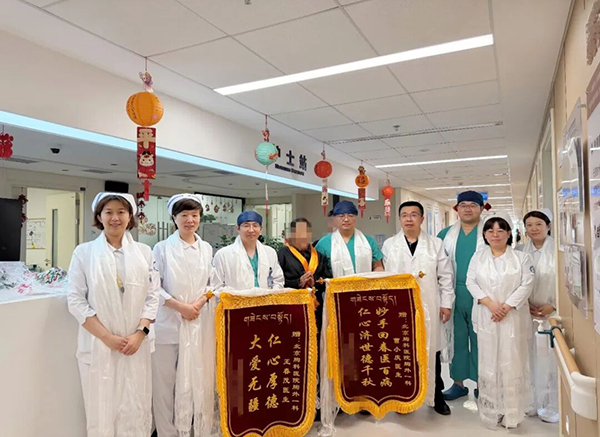 在医护人员的悉心照料下,患者病情逐渐好转,最终顺利康复出院。出院前,患者及家人满怀感激,向科室敬献了哈达与锦旗。患者孙女卓嘎医生特意发来感谢信,信中动情写道:“暖心守护,在北京胸科医院重获安心和希望!”短短数字,不仅是对医疗技术的认可,更是对高原同胞跨越山海的信任托付。