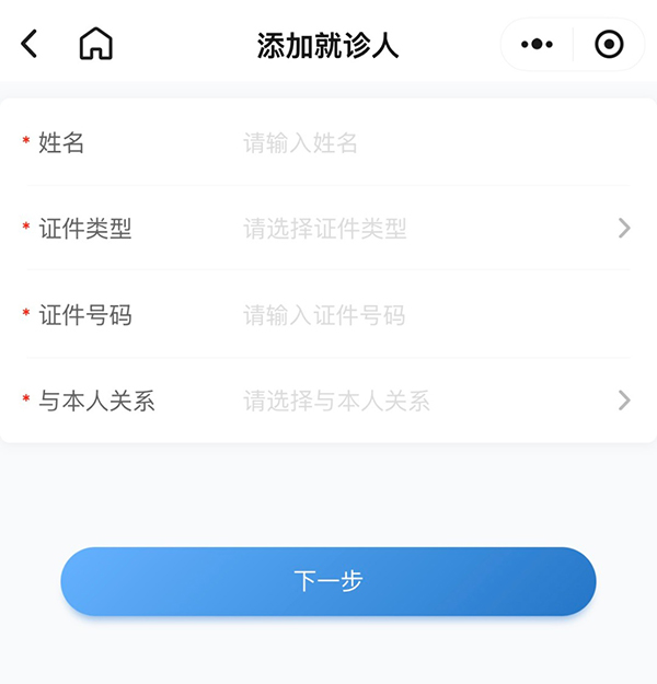 如未添加过就诊人,请点击“添加就诊人”,根据页面提示,填写就诊人信息,已经添加过就诊人,选择需要查看检查的“就诊人”。